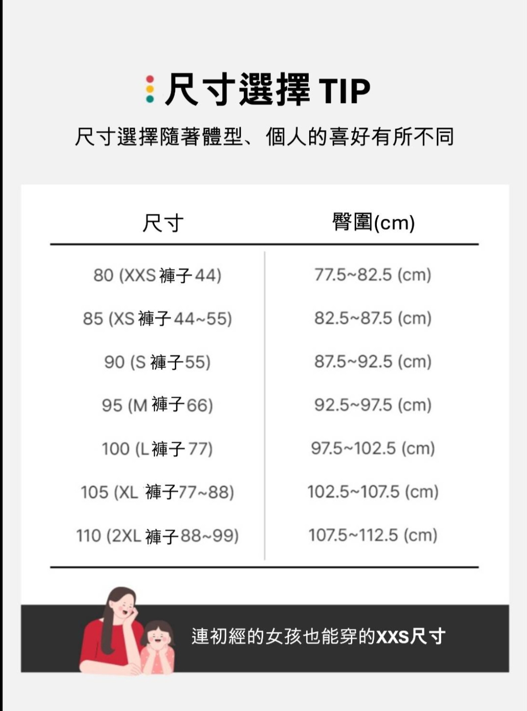 85 (XS褲子44~55)/82.5~87.5 (cm)